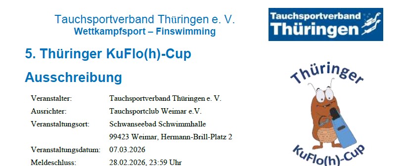 🇩🇪 2. Frühlingspokal und 44. Süddeutsche Meisterschaften im Finswimming vom 29.03.2025 bis 30.03.2025 Erfurt